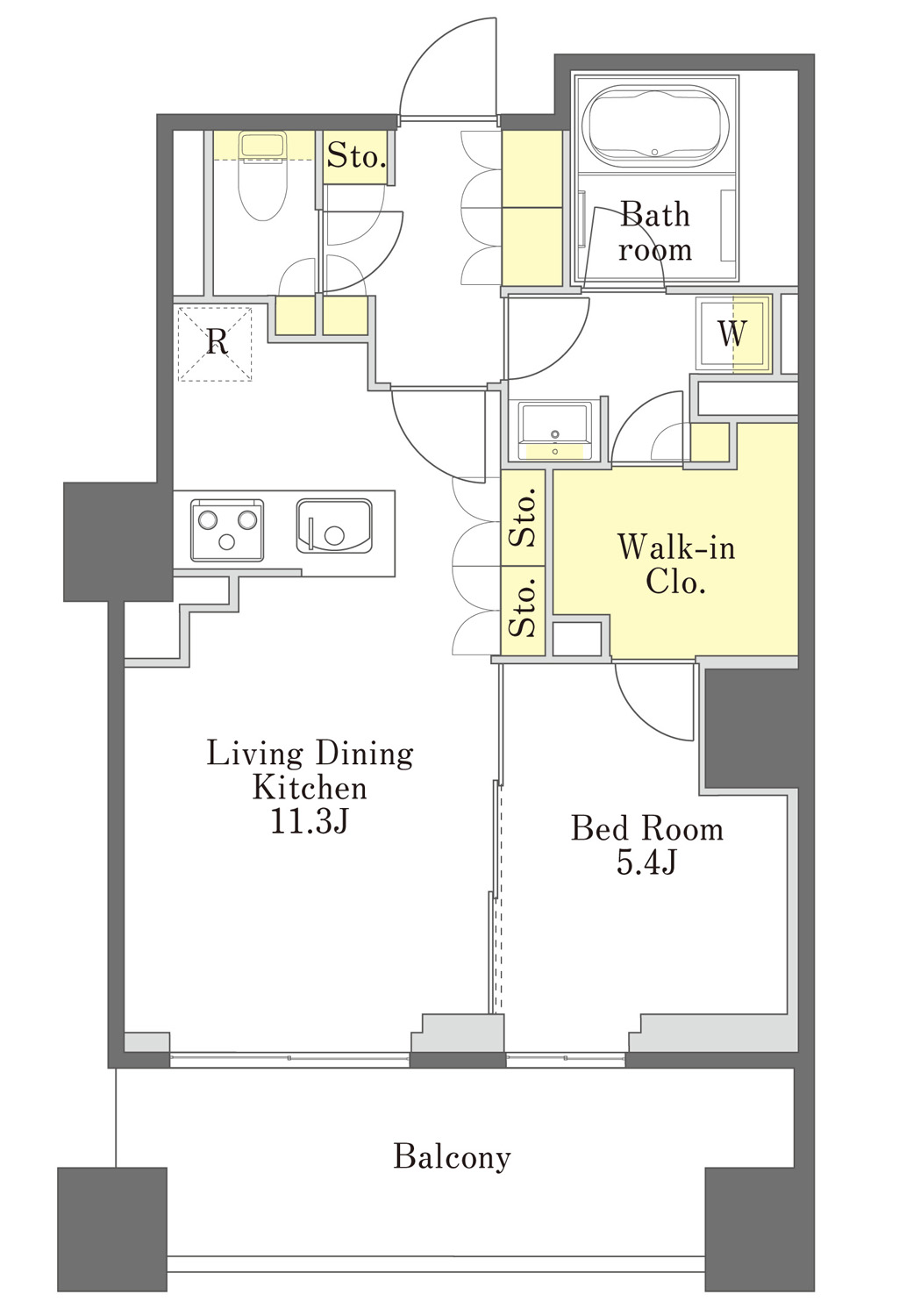 In Japanese housing abbreviations, "1R" stands for one room and is a type of room layout. It indicates a studio apartment with only one room that includes the kitchen and the bedroom.