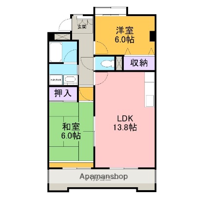 2楼 / 2LDK / 676sqft